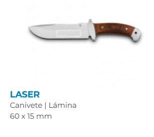 Faca em aço inox e madeira com bolsa de 600D. Fornecido em caixa presente. 300 x 19 x 60 mm
